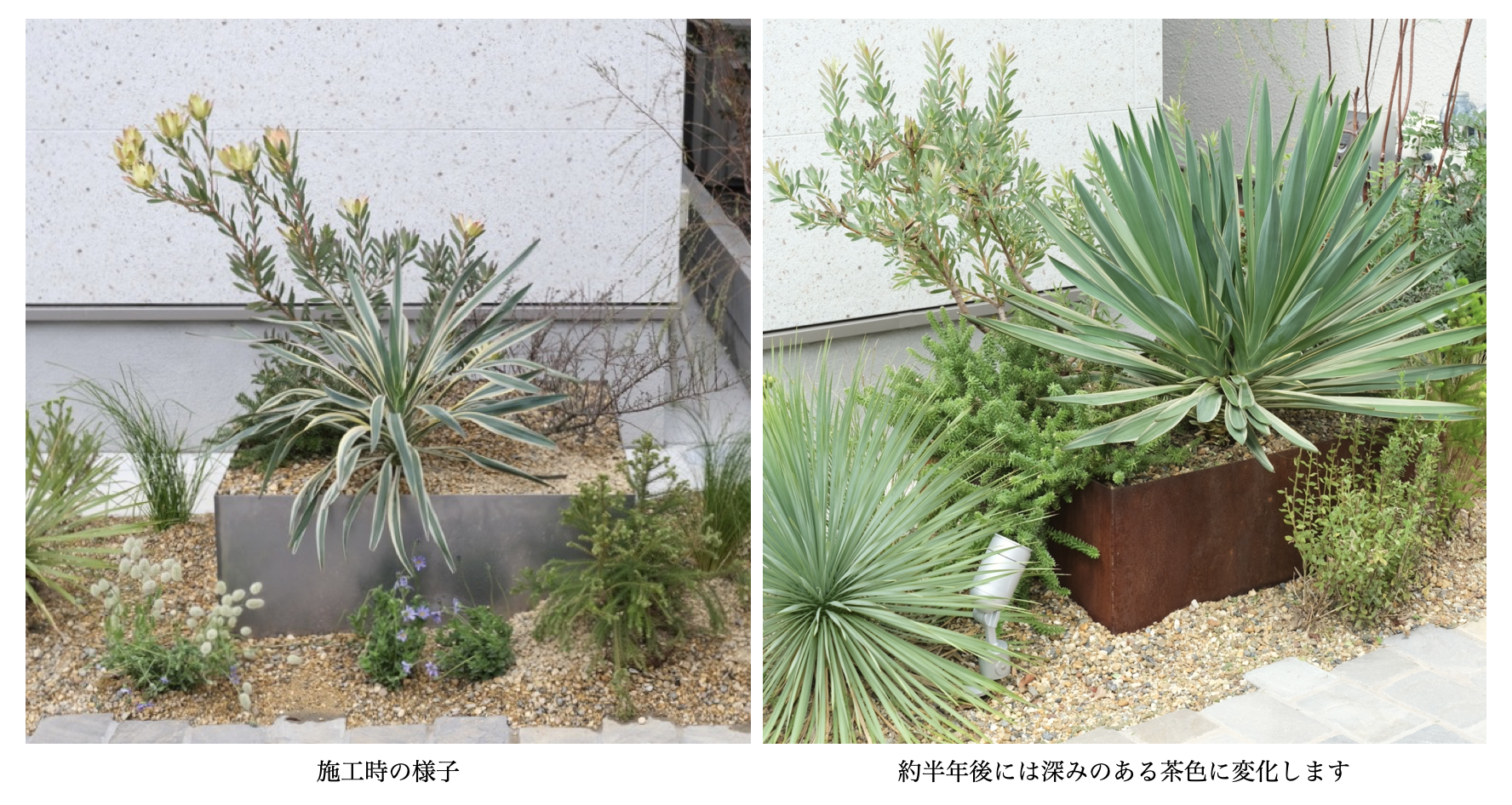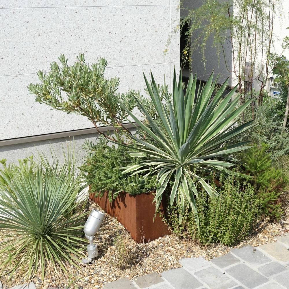 the ROOTsが得意とする自然(Natural)と素材感(texture)を合わせたガーデンを、限られたスペースで表現するのに最も理想に近い形で表現出来るのがコールテン鋼でした。